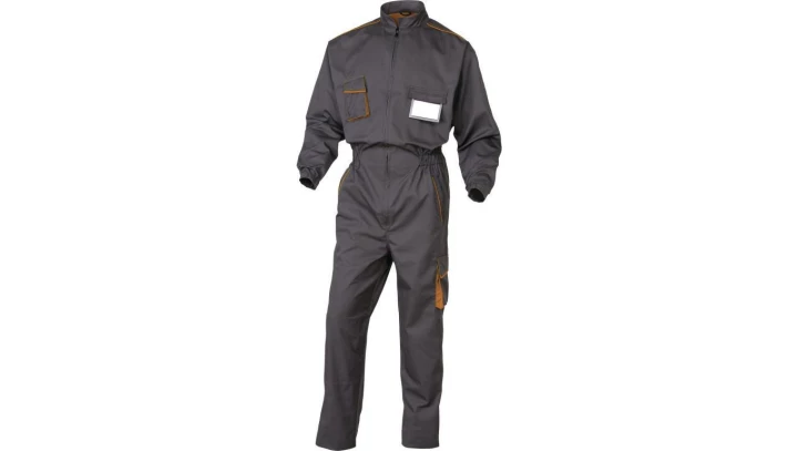 Kombinezon panostyle zapinany na 1 zamek, z poliestru (65%) i bawełny (35%), 235 g/m2 szaro-pomarańczowy S o numerze katalogowym M6COMGOPT w kategorii Kombinezony, Odzież robocza. Produkt wyprodukowany przez markę DELTA PLUS, seria M6COM.