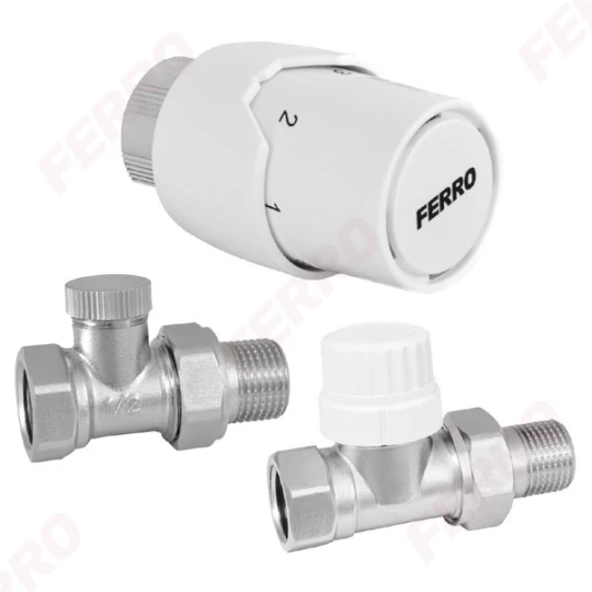 Komplet termostatyczny prosty 1/2" o numerze katalogowym ZTM20 w kategorii Zestawy termostatyczne, Głowice termostatyczne i zawory. Produkt wyprodukowany przez markę FERRO, seria ZTM.
