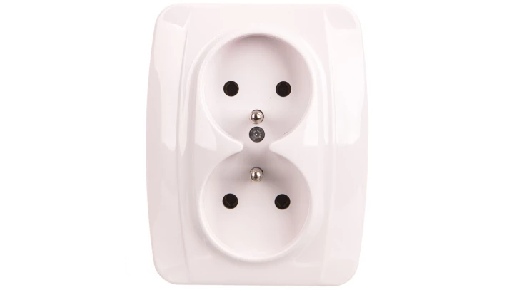 AS BIAŁY GNIAZDO 2X Z/U Z PRZESŁONAMI ZACISKI ŚRUBOWE 16A 250V