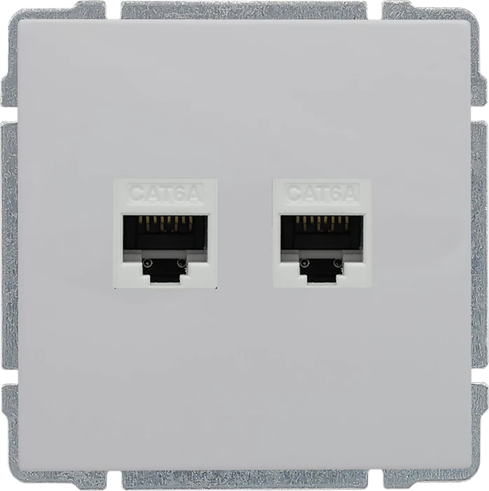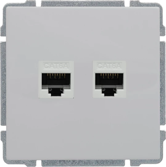 Simon 54 Gniazdo komputerowe podwójne 2xRJ45 kat.6 z przesłoną białe D62.01/11