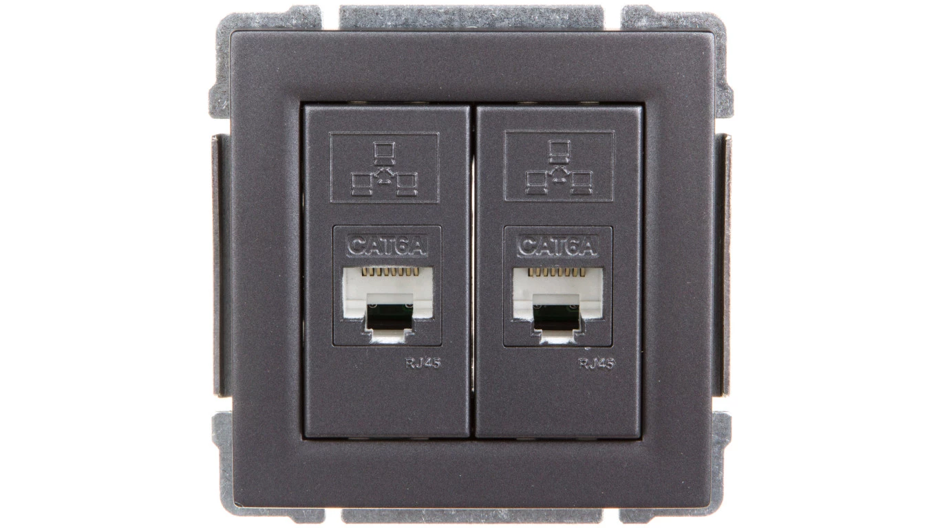 Simon 54 Gniazdo komputerowe podwójne 2xRJ45 kat.6 z przesłoną antracyt D62.01/48