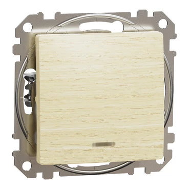 Łącznik 1-biegunowy z podświetleniem, brzoza, efekt drewna, Sedna Design i Elements SDD180101L