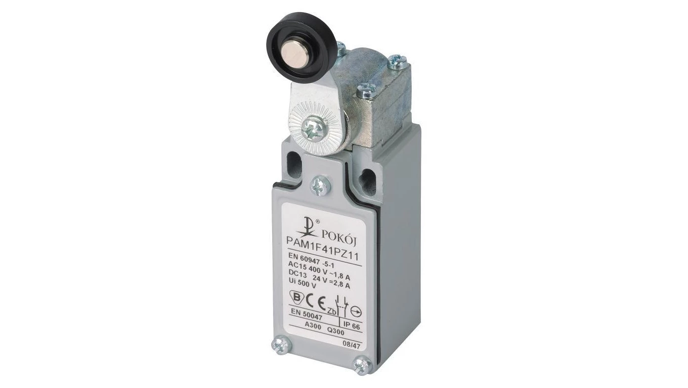 Wyłącznik krańcowy PAM1F41PZ11 jednopozycyjny o numerze katalogowym A37-4670 w kategorii Krańcówki, Czujniki mechaniczne. Produkt wyprodukowany przez markę POKÓJ, seria PAM.