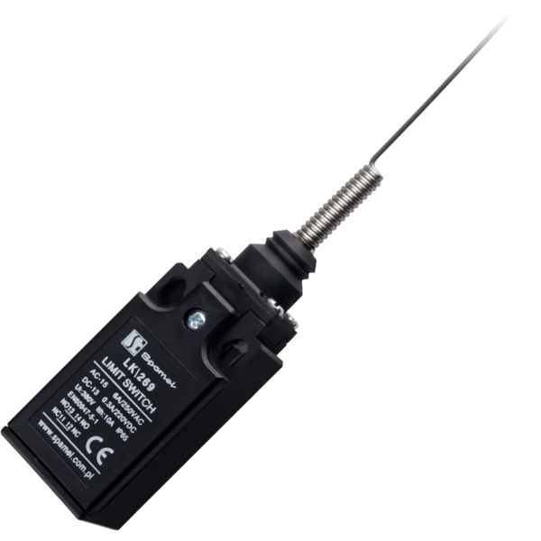Wyłącznik krańcowy (tworzywo) dzwignia sprężynowa o numerze katalogowym LK\269 w kategorii Krańcówki, Czujniki mechaniczne. Produkt wyprodukowany przez markę SPAMEL, seria LK.