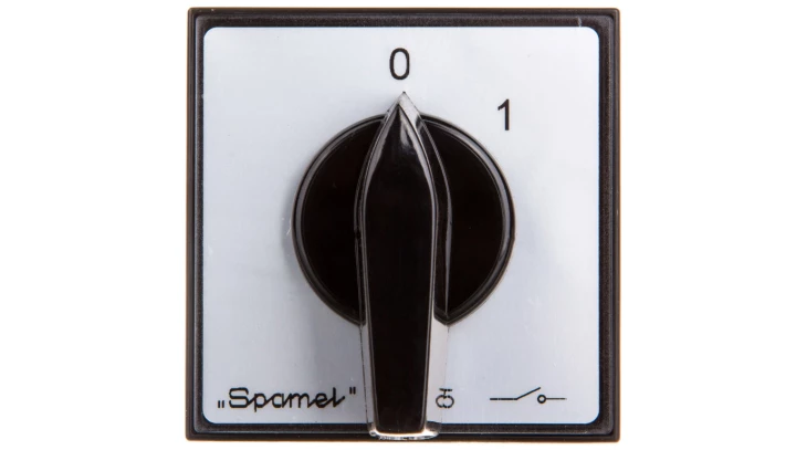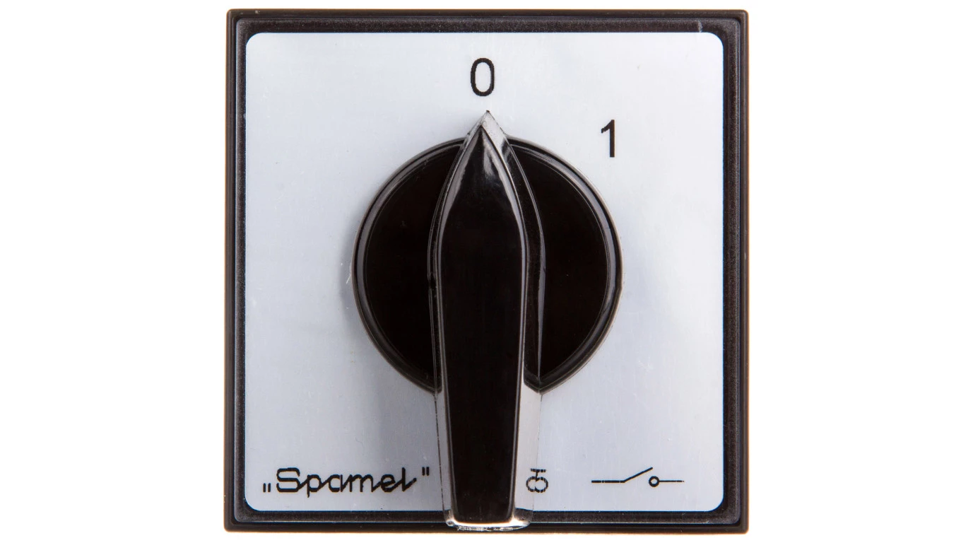 Łącznik Krzywkowy 32A, Rozłącznik 0-1 (2 - biegunowy), mocowany do pulpitu czoło szare pokrętło czarne o numerze katalogowym SK32-1.828\P03 w kategorii Wyłączniki i rozłączniki obrotowe, Wyłączniki, rozłączniki. Produkt wyprodukowany przez markę SPAMEL.
