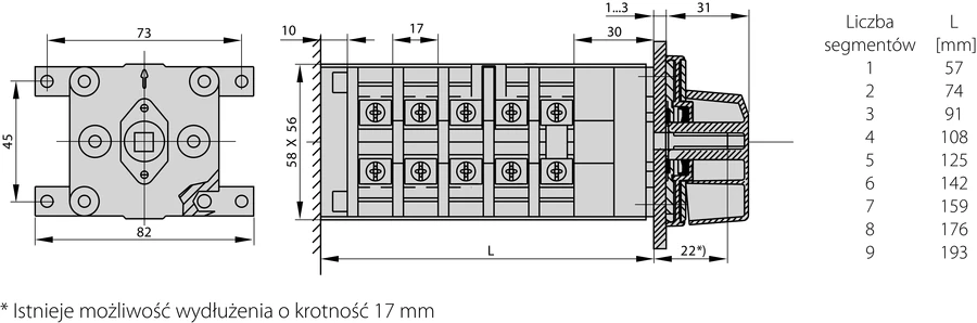 ŁĄCZNIK KRZYWKOWY 63A, PRZEŁĄCZNIK ZMIANY KIERUNKU OBROTÓW L-O-P, MOCOWANIE DO BAZY CZOŁO SZARE POKR