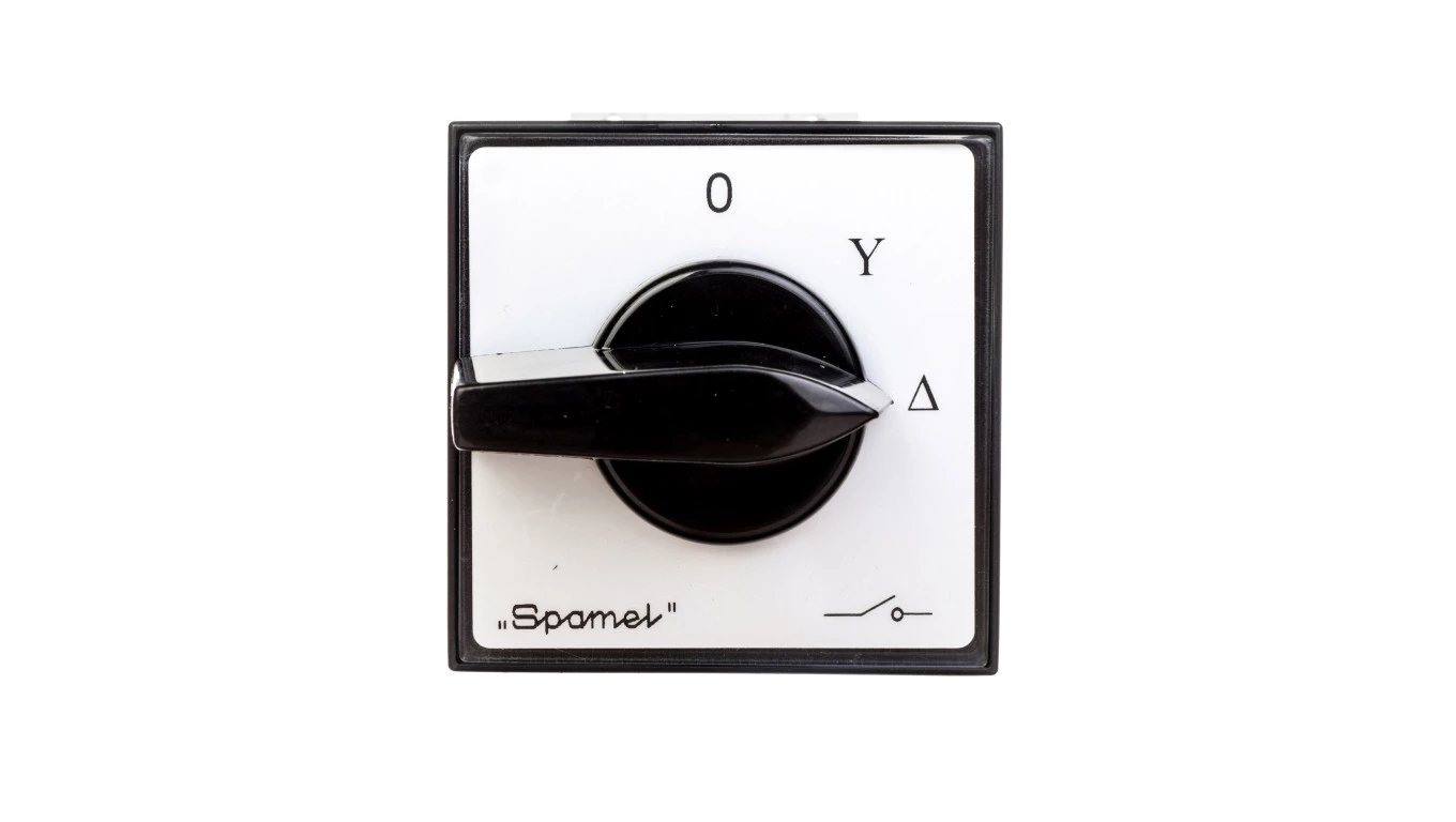 Łącznik Krzywkowy 40A, Przełącznik rozruchowy trójfazowy (0,Y,A), mocowany na szynie czoło szare pokrętło czarne o numerze katalogowym ŁK40-4.831\S03 w kategorii Wyłączniki i rozłączniki obrotowe, Wyłączniki, rozłączniki. Produkt wyprodukowany przez markę SPAMEL.