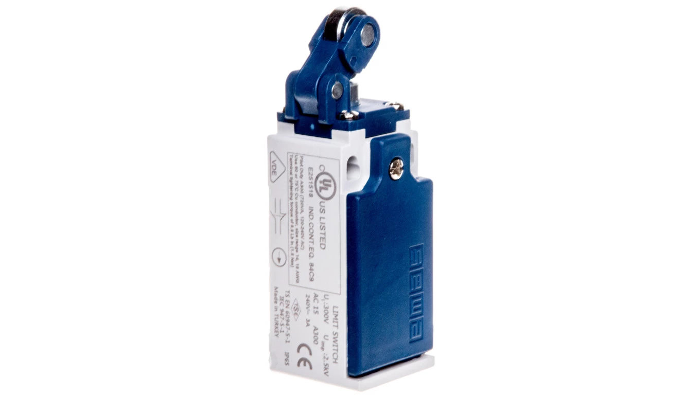 ŁĄCZNIK L5 W OBUDOWIE Z TWORZYWA, 1NC+1NO, PLASTIKOWA DŹWIGNIA Z ROLKĄ METALOWĄ EMAS