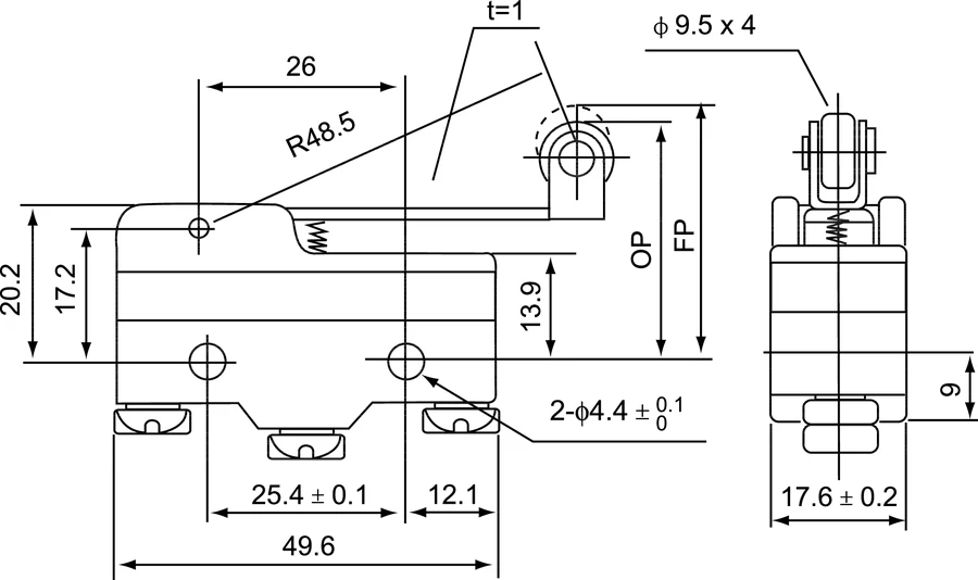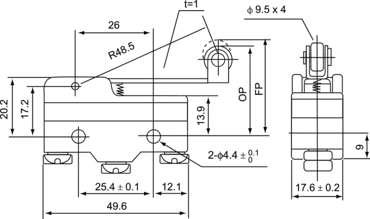 Łącznik miniaturowy dźwignia z rolką długa MS1703