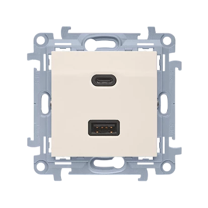 Ładowarka USB podwójna, C+A, 30W, kremowy, SIMON10 o numerze katalogowym   CEC2CAQ.01/41 w kategorii Gniazda instalacyjne>Gniazda podtynkowe. Produkt wyprodukowany przez markę KONTAKT-SIMON, seria SIMON 10.