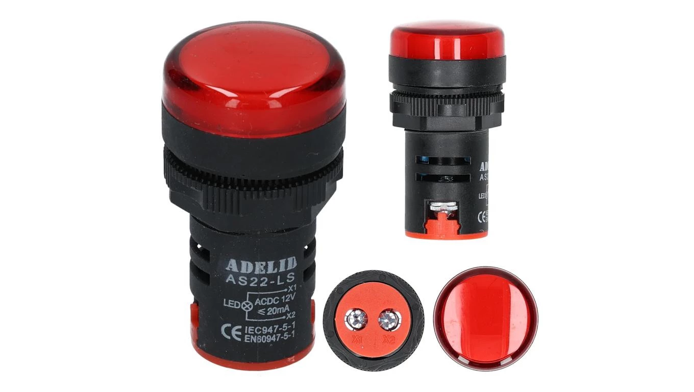 Lampka kontrolna sterownicza czerwona LED fi:22 12V
