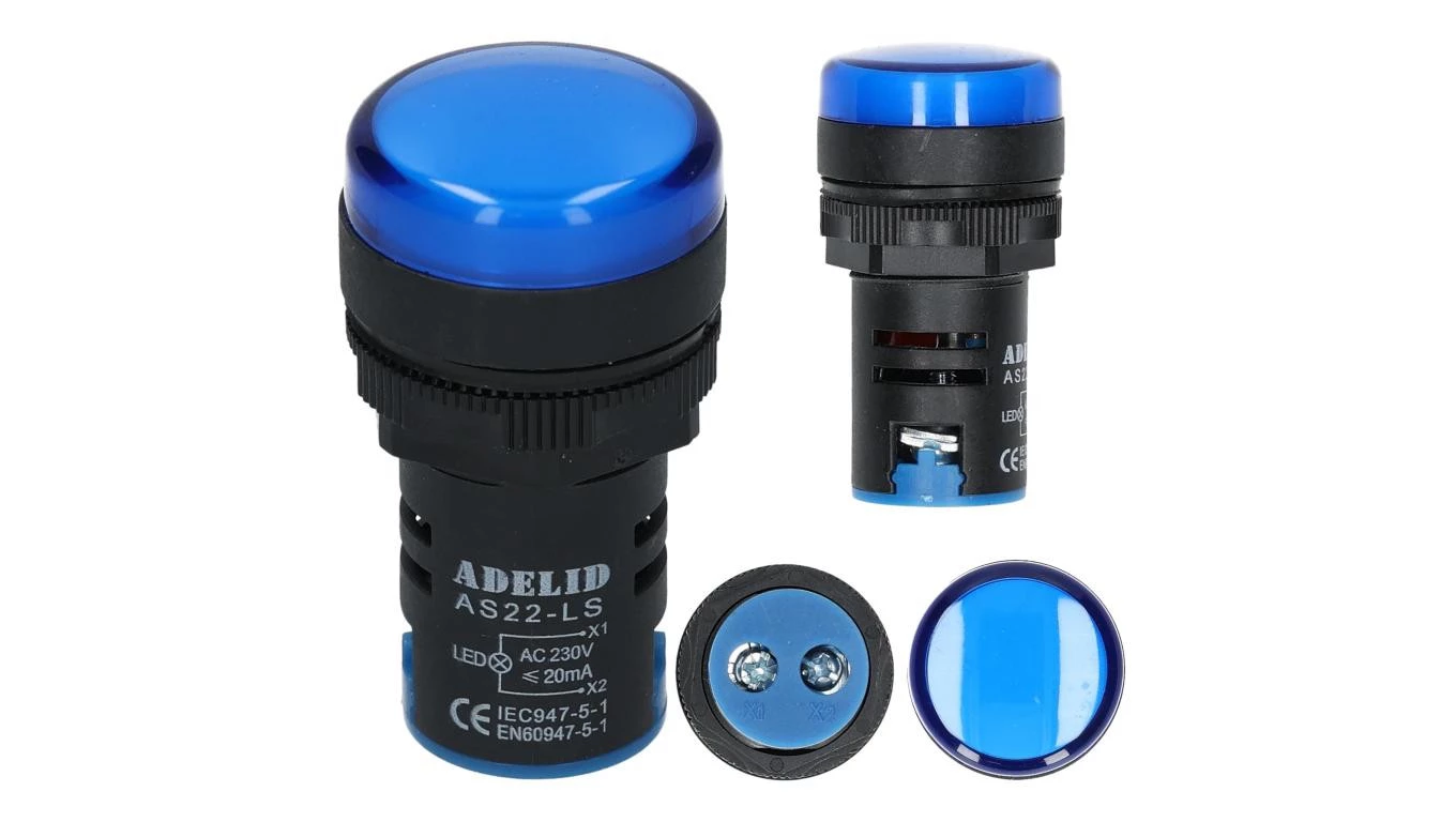 Lampka kontrolna sterownicza niebieska LED fi:22 230V