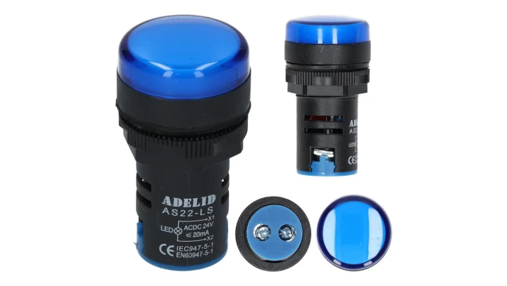 Lampka kontrolna sterownicza niebieska LED fi:22 24V