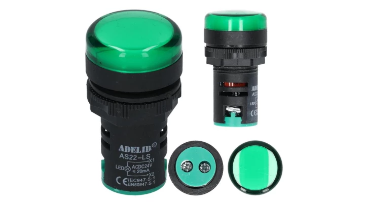 Lampka kontrolna sterownicza zielona LED fi:22 24V
