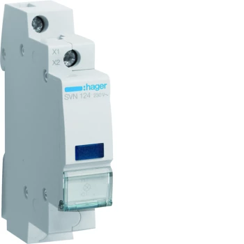 Lampka sygnalizacyjna, niebieska 230V AC o numerze katalogowym SVN124 w kategorii Pozostała aparatura modułowa, Aparatura modułowa. Produkt wyprodukowany przez markę HAGER.