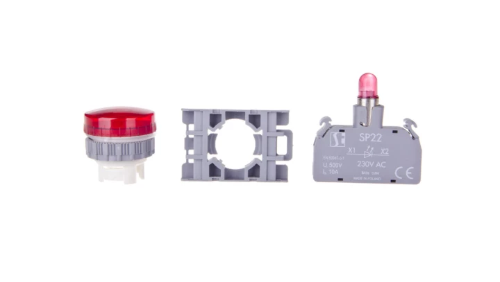 Lampka sygnalizacyjna 22mm czerwona 230V AC SP22-LC-230-BA9S.