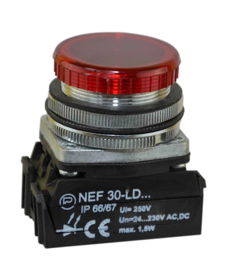 Lampka NEF30LD/24V-230V czerwona W0-LDU1-NEF30LD C o numerze katalogowym W0-LDU1-NEF30LD C w kategorii Sygnalizacja optyczna lampki, Sygnalizacja optyczna i akustyczna. Produkt wyprodukowany przez markę PROMET, seria NEF30.