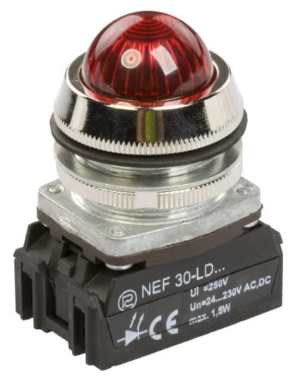 Lampka NEF30LDS/24V-230V czerwona W0-LDU1-NEF30LDS C o numerze katalogowym W0-LDU1-NEF30LDS C w kategorii Sygnalizacja optyczna lampki, Sygnalizacja optyczna i akustyczna. Produkt wyprodukowany przez markę PROMET, seria NEF30.