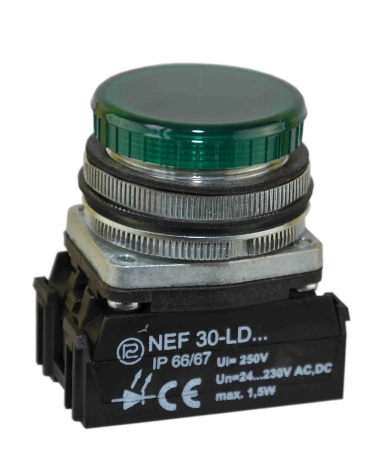Lampka NEF30LD/24V-230V zielona W0-LDU1-NEF30LD Z o numerze katalogowym W0-LDU1-NEF30LD Z w kategorii Sygnalizacja optyczna lampki, Sygnalizacja optyczna i akustyczna. Produkt wyprodukowany przez markę PROMET, seria NEF30.