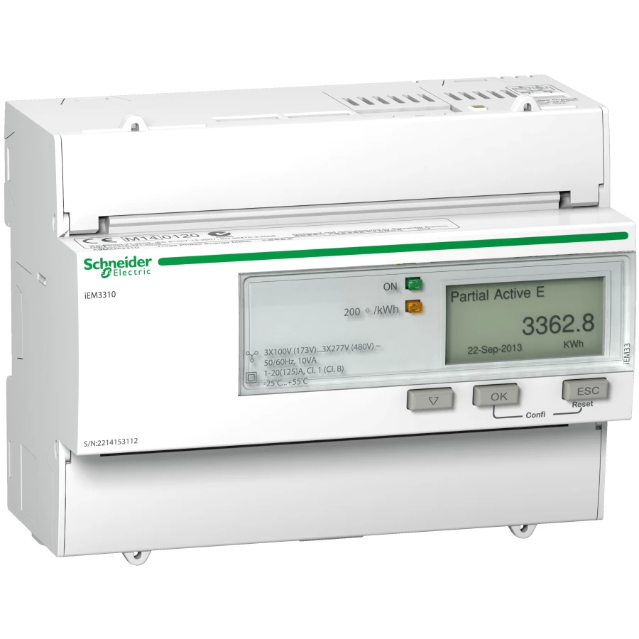 Licznik energii elektrycznej 1/3-fazowy 125A 100-277/173-480V kl.1/B MID taryfowy cyfrowy modułowy A9MEM3310