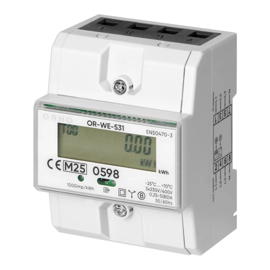 Licznik energii elektrycznej 3-fazowy 80A, MID, 3 moduły, DIN TH-35mm,OR-WE-531