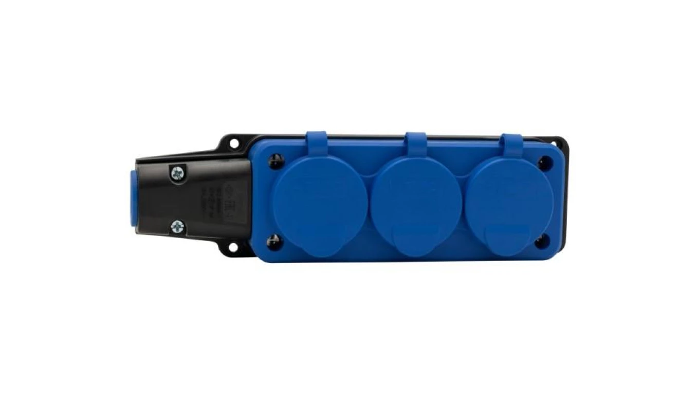 Listwa gumowa 3x230V 16A niebieska o numerze katalogowym   F6.0484 w kategorii Gniazda, wtyki, wyłączniki>Gniazda przenośne. Produkt wyprodukowany przez markę F-ELEKTRO.