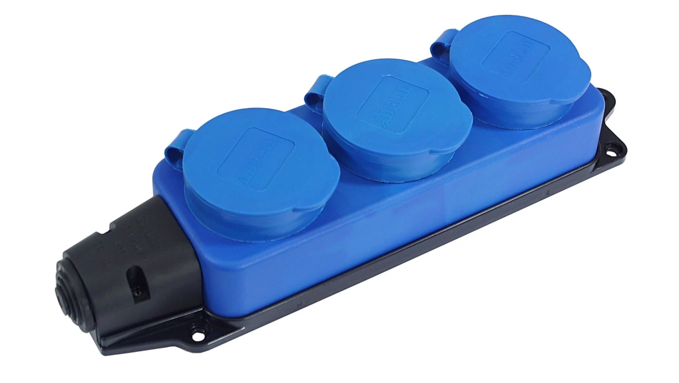 Listwa /rozgałęźnik/ do przedłużacza 3‑gniazda z/u gumowe IP44 niebieska