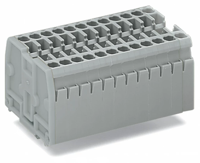 listwa zaciskowa 2-przewodowa; bez przycisków; ze stopkami zatrzaskowymi; 11-bieg.; do płyty o grubości 0,6 ... 1,2 mm; otwór montażowy Ø 3,5 + 0,1 mm; 2,5 mm²; CAGE CLAMP®; jasnoszary