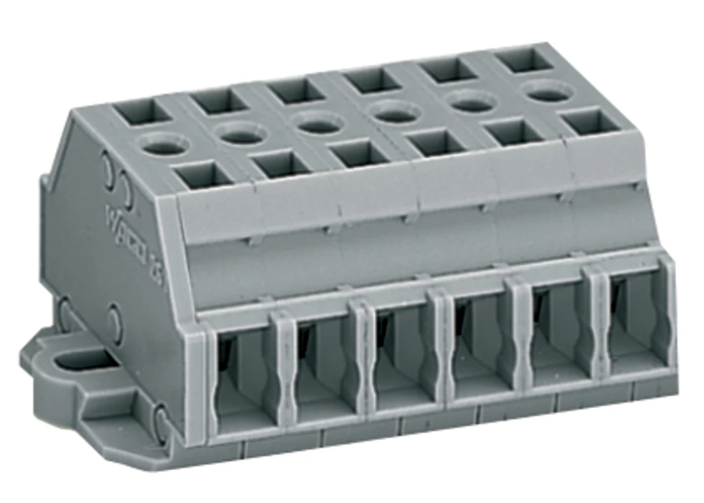 listwa zaciskowa 2-przewodowa; bez przycisków; z uchwytami montażowymi; 6-bieg.; do mocowania śrubowego i podobnego typu; otwór montażowy Ø 3,2 mm; 2,5 mm²; CAGE CLAMP®; szary