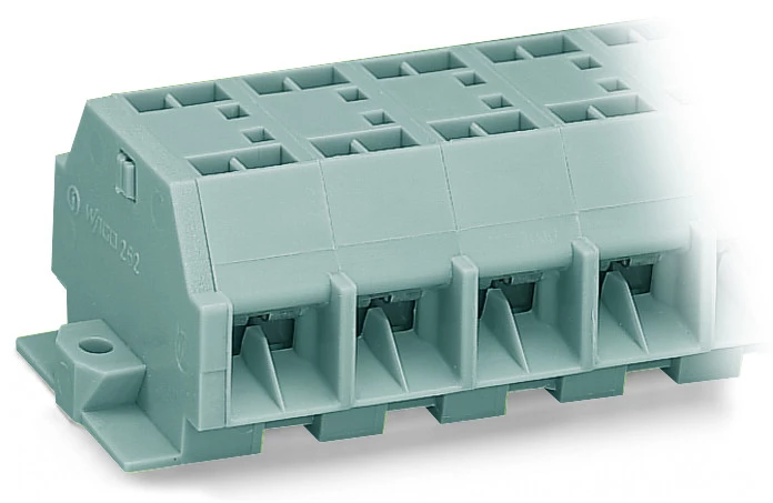 listwa zaciskowa 4-przewodowa; bez przycisków; z uchwytami montażowymi; 4-bieg.; do mocowania śrubowego i podobnego typu; otwór montażowy Ø 3,2 mm; 4 mm²; CAGE CLAMP®; 4,00 mm²; szary