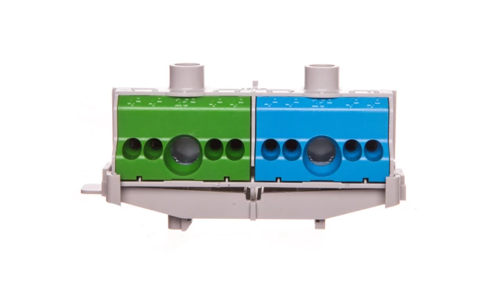 Listwa zaciskowa PE i N na szynę 80 A 2x(1x25mm + 4x4mm2) niebiesko-zielona FC PN 10 26001206
