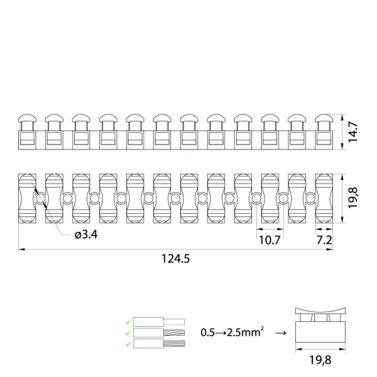 Listwa zaciskowa - szybkozłączka PS 2,5/12 biała 10A 19.2512