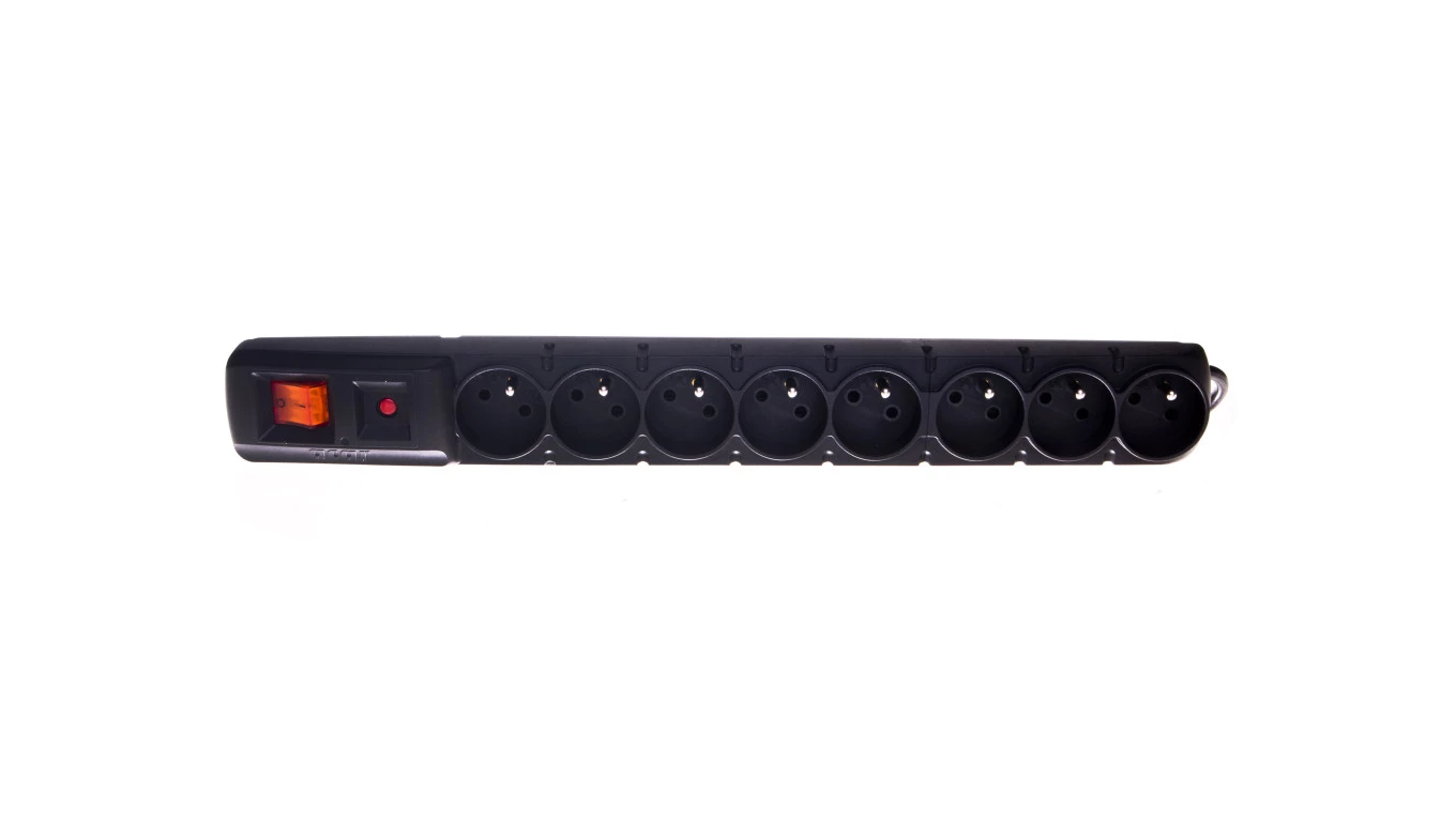 LISTWA ZASILAJĄCA 19" 3M 8 GNIAZD/WYŁĄCZNIK/BEZPIECZNIK - CZARNA