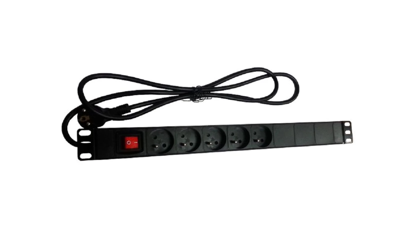 Listwa zasilająca 19" gniazdo 5xCEE 7/5 wtyk CEE 7/7 z wyłącznikiem o numerze katalogowym PZ051U w kategorii Szafy i wyposażenie IT, Infrastruktura IT. Produkt wyprodukowany przez markę ALANTEC, seria 5XCEE.