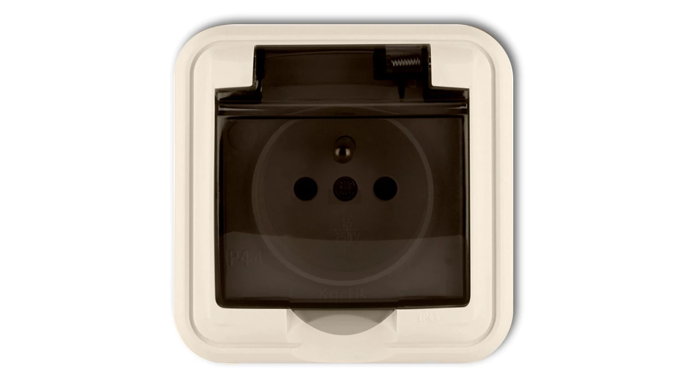 LIZA Gniazdo bryzgoszczelne z/u (klapka dymna) beżowy 1GPH-1zd
