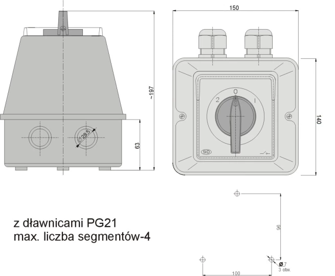 ŁK 63-73 ZMIANA ZASILANIA 2-0-1 IP-65