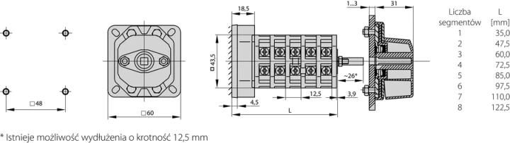 Łącznik Krzywkowy 15A, Rozłącznik 0-1 (2 - biegunowy), mocowanie do bazy czoło szare pokrętło czarne o numerze katalogowym ŁK15-1.828\B03 w kategorii Wyłączniki i rozłączniki obrotowe, Wyłączniki, rozłączniki. Produkt wyprodukowany przez markę SPAMEL.