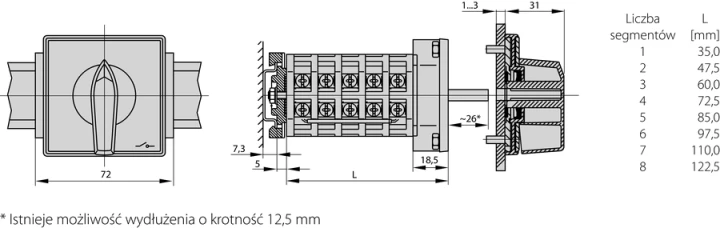 ŁK15-2.8445\S03 ŁĄCZNIK KRZYWKOWY 15A 0-1-2-3 NA SZYNĘ CZOŁO SZARE