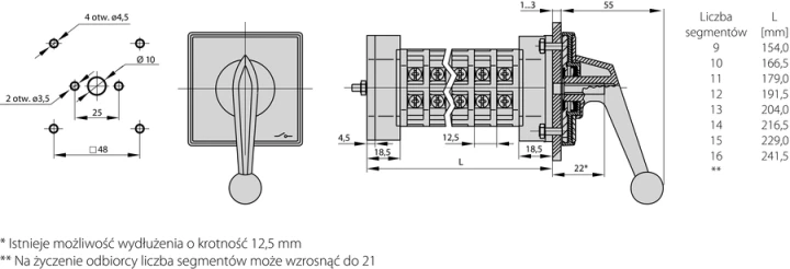 ŁK15-4.831\P03 15A 0-T-G 3P ŁĄCZNIK KRZYWKOWY 15A 3P B/O IP65 NAPĘD CZARNY