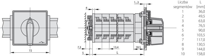 ŁK32R-3.8380\S03 ŁĄCZNIK KRZYWKOWY 32A, ROZŁĄCZNIK 1-0-2 (3 - BIEGUNOWY), MOCOWANY NA SZYNIE CZOŁO S