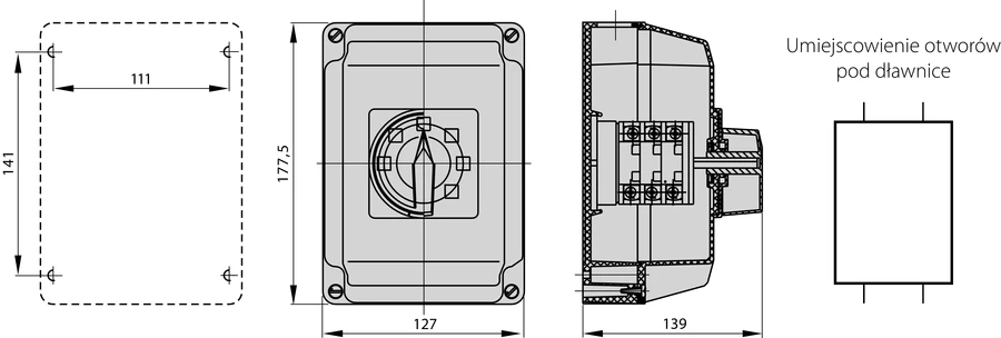 Łącznik Krzywkowy 63A, Rozłącznik 0-1 (3 - biegunowy), w obudowie OB4 z czołem zamykanym o numerze katalogowym ŁK63-2.8211\OB4Z w kategorii Wyłączniki i rozłączniki obrotowe, Wyłączniki, rozłączniki. Produkt wyprodukowany przez markę SPAMEL.