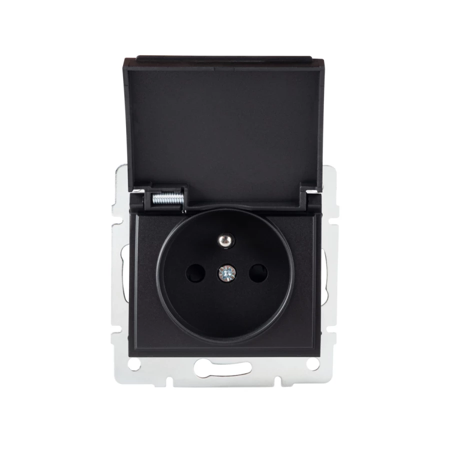 Simon 54 Gniazdo bryzgoszczelne z/u IP44 z klapką transparentną antracyt DGZ1BZ.01/48A