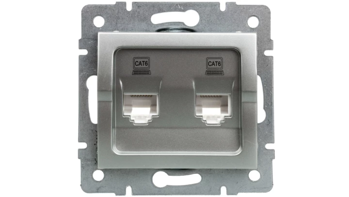 LOGI Gniazdo komputerowe podwójne niezależne (2x RJ45Cat 6 Jack) Srebrny 021420043 25229