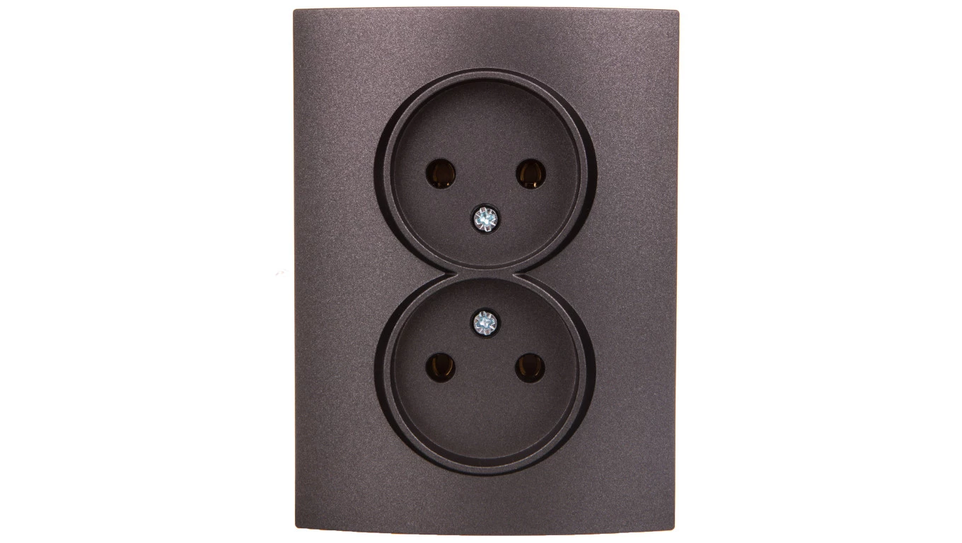 LOGI Gniazdo podwójne bez uziemienia kompletne śrubowy Grafit 16A 250V 021280141 25273