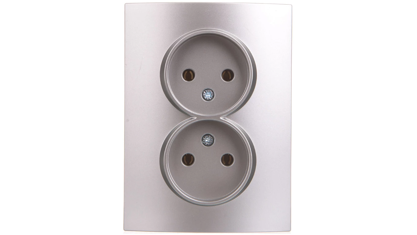 LOGI Gniazdo podwójne bez uziemienia kompletne śrubowy Srebrny 16A 250V 021280143 25214