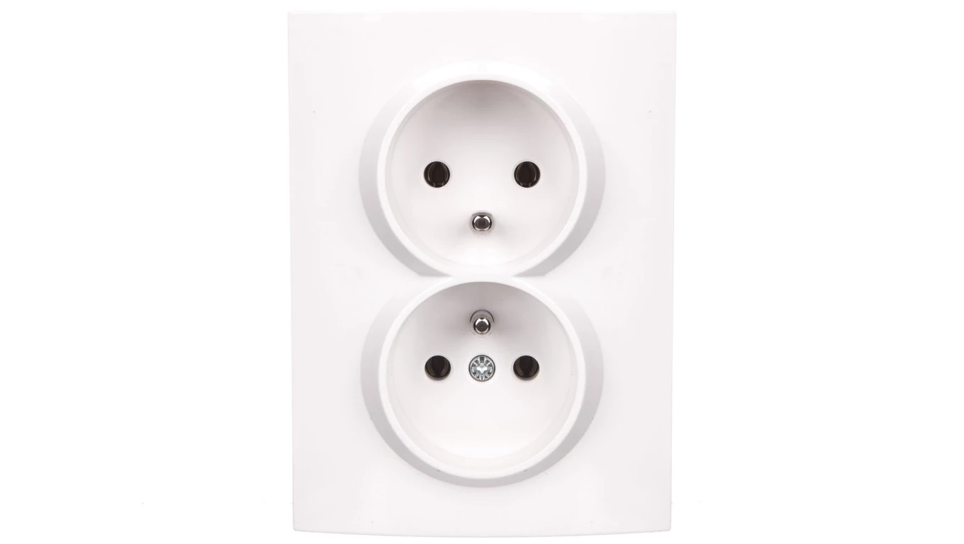 AS BIAŁY GNIAZDO 2X Z/U Z PRZESŁONAMI ZACISKI ŚRUBOWE 16A 250V
