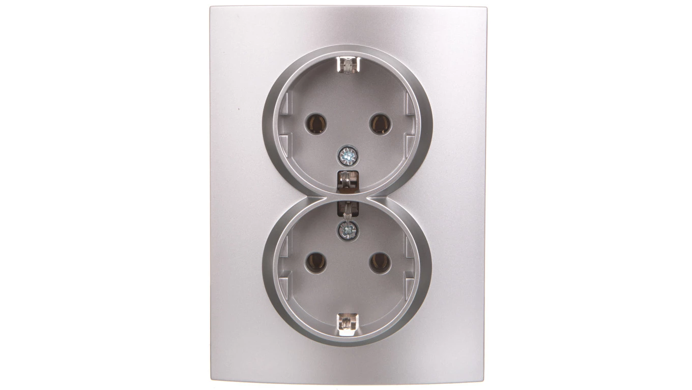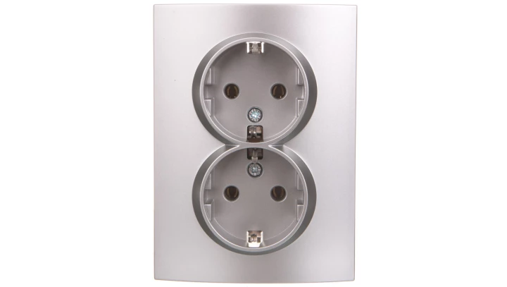 LOGI Gniazdo podwójne Schuko kompletne śrubowy 16A 250V srebrne 021270143 25213