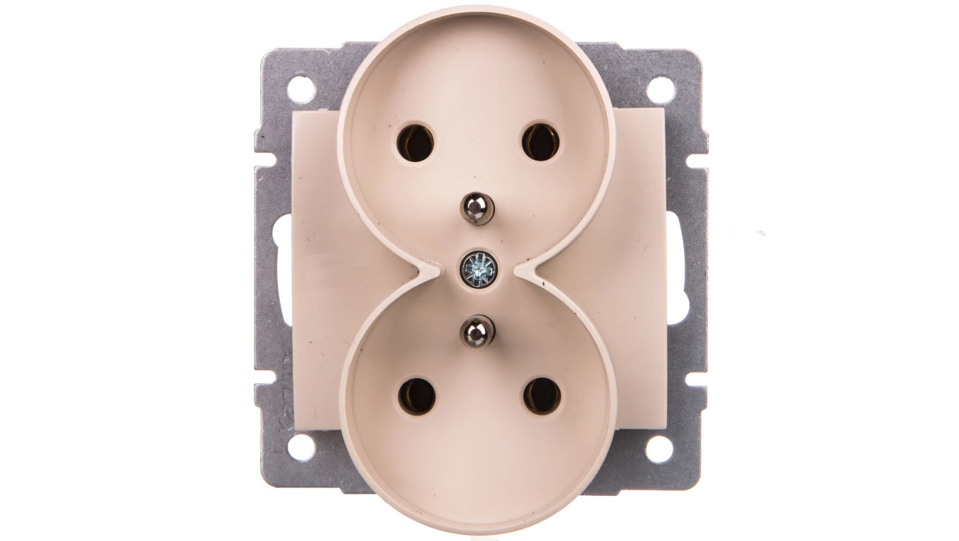 LOGI Gniazdo podwójne z uziemieniem śrubowy Kremowy 16A 250V 021253103 25151