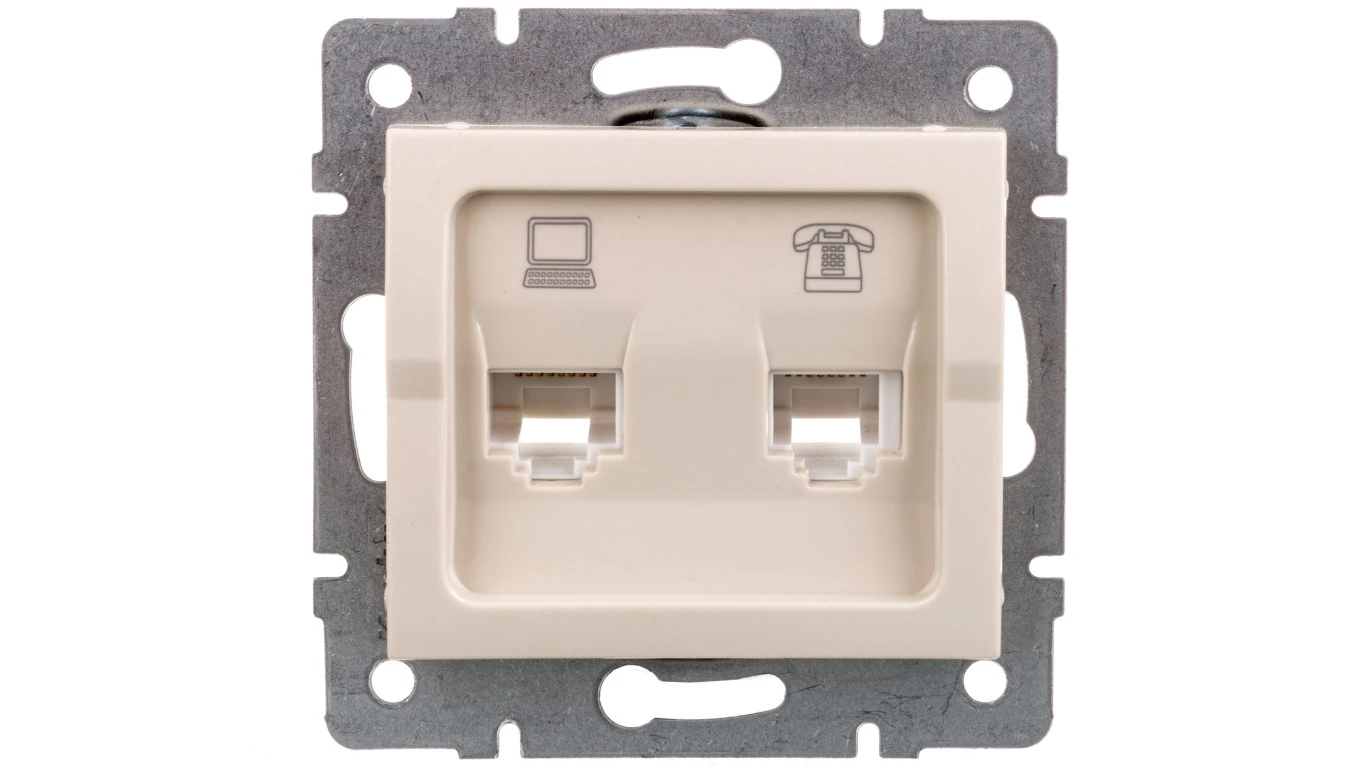 LOGI Gniazdo teleinformatyczne (RJ45 Cat 5e+RJ11) kremowe 021430003 25171