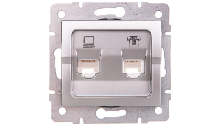 LOGI Gniazdo teleinformatyczne (RJ45 Cat 5e+RJ11) srebrne 021430043 25230